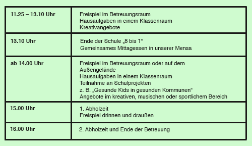 von 7.30 Uhr – 16.00 Uhr, teilweise in Kooperation mit anderen Rheinberger Grundschulen.